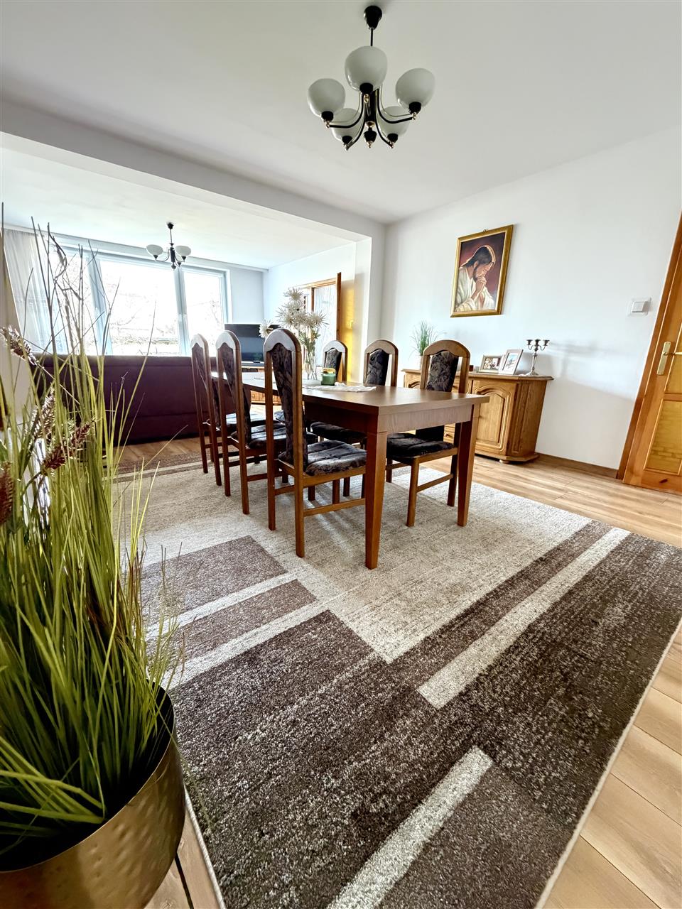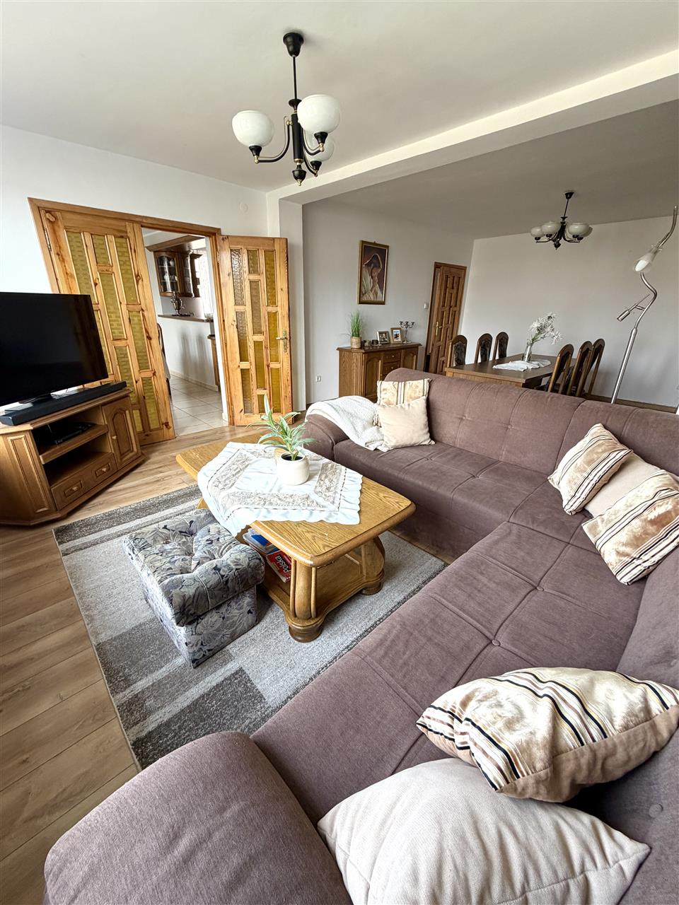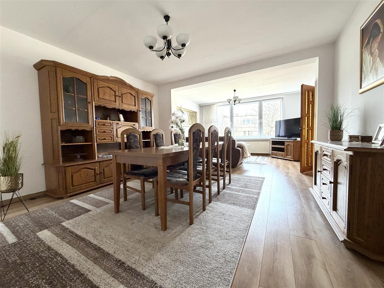 przestronny salon z jadalnią,