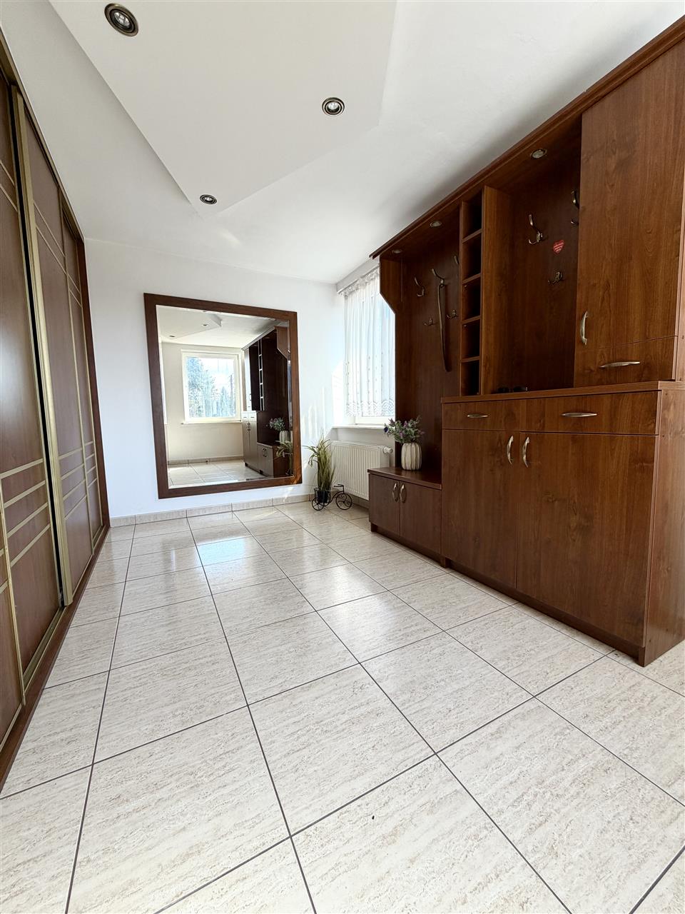 obszerny hol z dużą szafą w zabudowie.