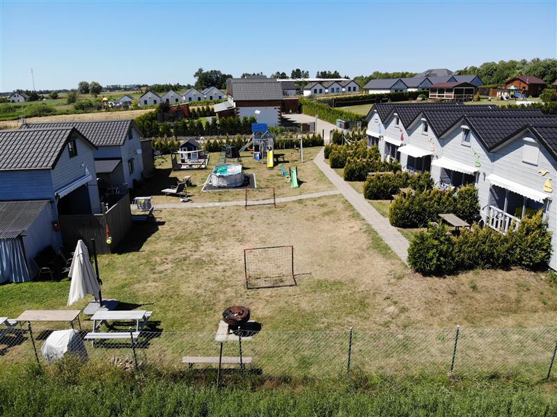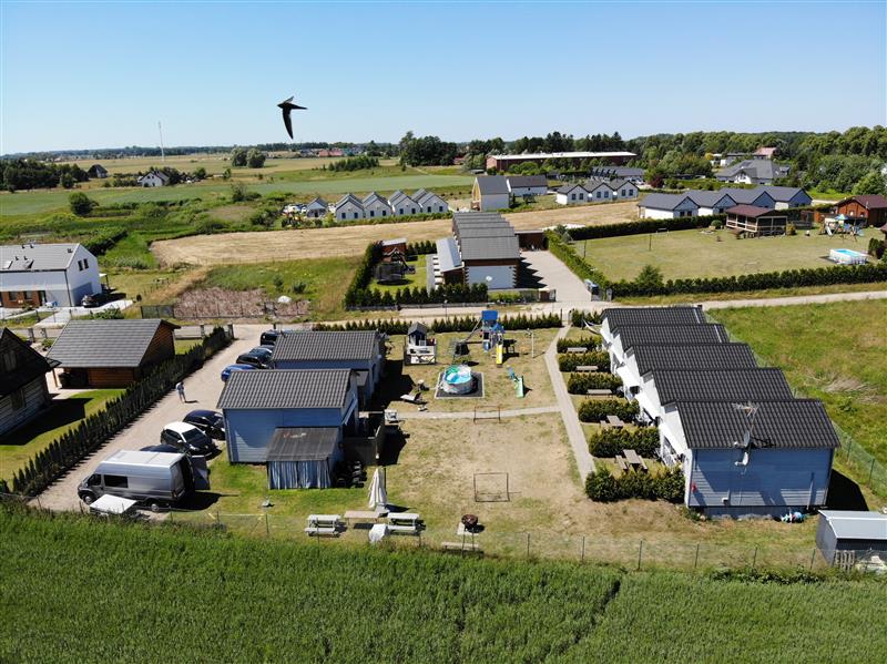 Dodatkowym atutem każdego domku jest przestronny, zadaszony taras z wygodnymi meblami wypoczynkowymi oraz prywatna część zielona (ok. 16 m2) z markizą oraz ławostołem. Całość oferowana z pełnym wyposażeniem: sprzęt kuchenny, pralki, łóżka, meble, telewizory, pościel – gotowe do przyjęcia gości od zaraz!