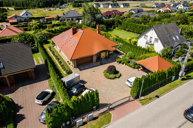 Budynek posadowiony na pięknie zagospodarowanej działce o powierzchni 1404m2.