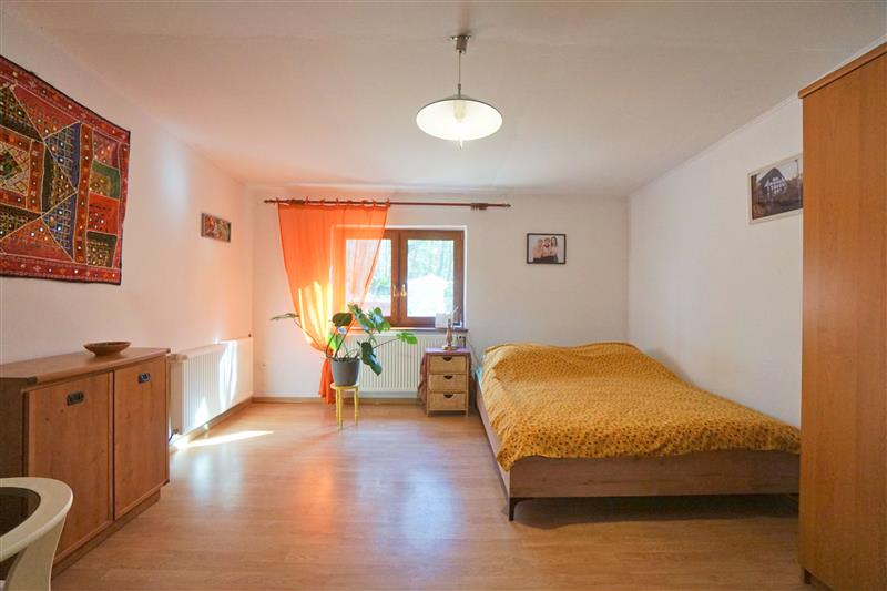 Na poddaszu: duża otwarta przestrzeń, obecnie wykorzystywana jako sypialnia.