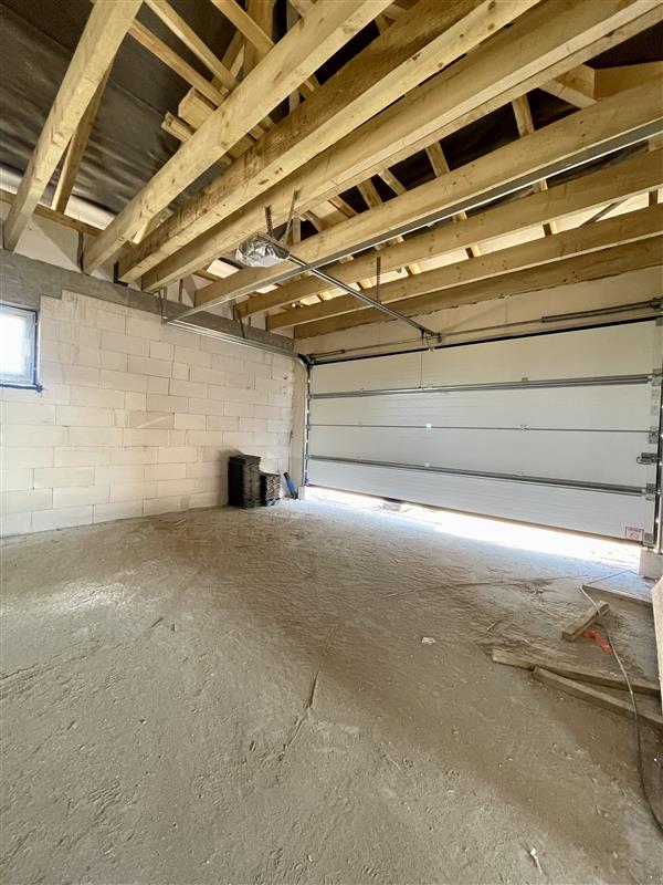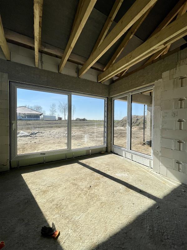 • stan surowy zamknięty – materiał budowlany: Suporex, okna (PCV trzyszybowe) i drzwi zewnętrzne (techniczne) zamontowane, brama garażowa oraz dach wykonany,