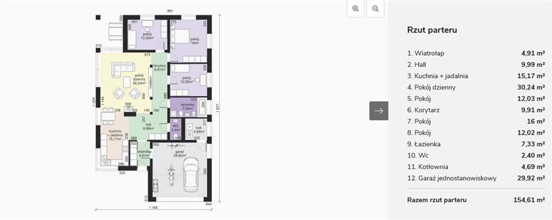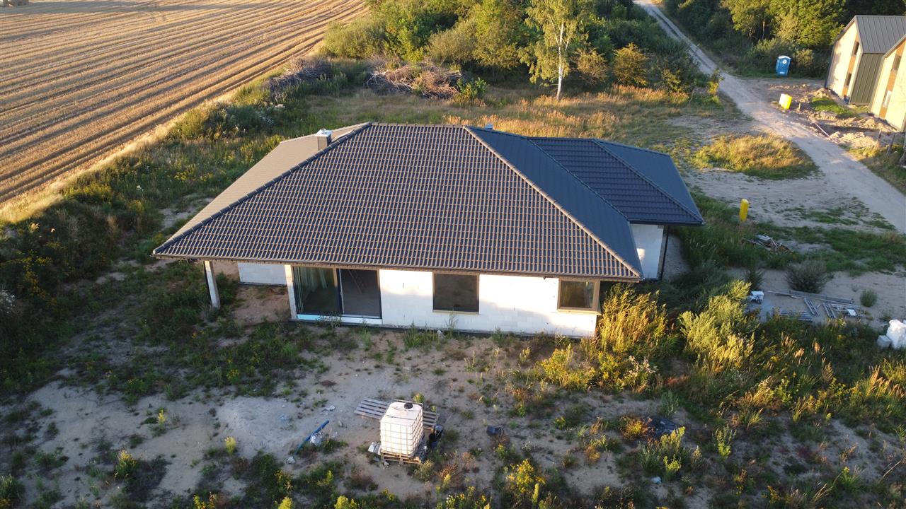 Dom parterowy 154,61 m2 – stan surowy zamknięty, wolnostojący, 3 sypialnie, duża działka, duży garaż – OKAZJA!
