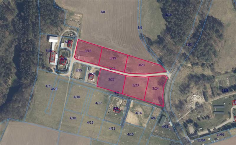 Posiadamy w ofercie kompleks 6 działek o powierzchni od 3000m2 do 3047m2 z możliwością podziału na mniejsze powierzchnie.