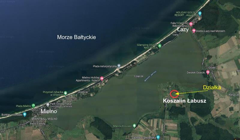 Działka pod zabudowę jednorodzinną, 1470 m2, Łabusz - Koszalin. Działka w kształcie prostokąta. Na okolicznych działkach powstają domy jednorodzinne.