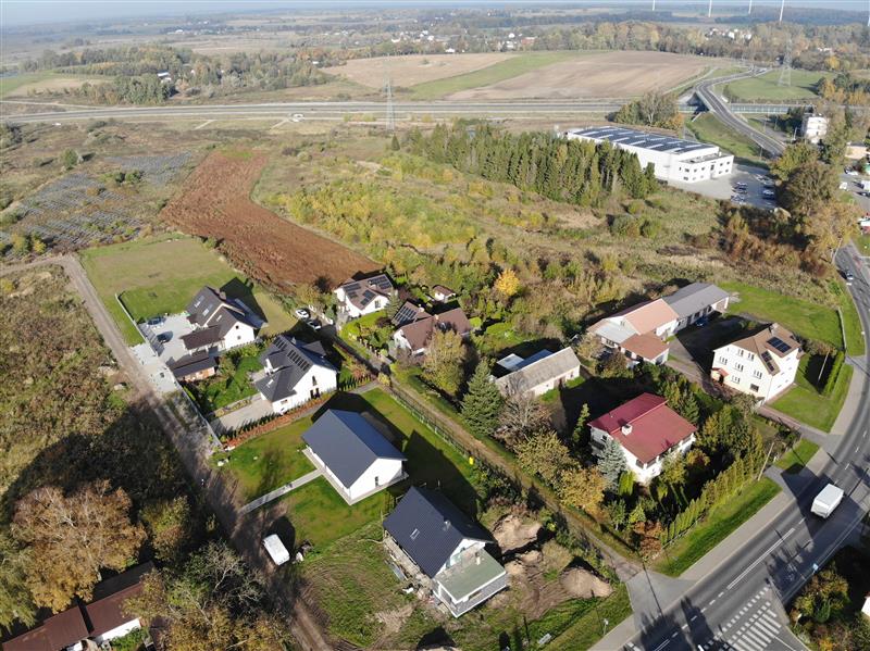 Prąd, woda, gaz i kanalizacja znajdują się w drodze z płyt jumbo – na wysokości ostatniego domu, około 120 metrów od granicy działki.