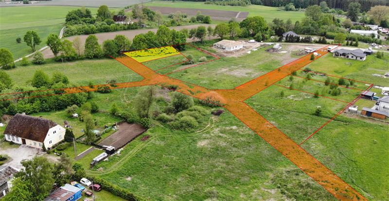 Współrzędne GPS (do mapy Google, mniej więcej środek działki): 54.177342, 16.102780