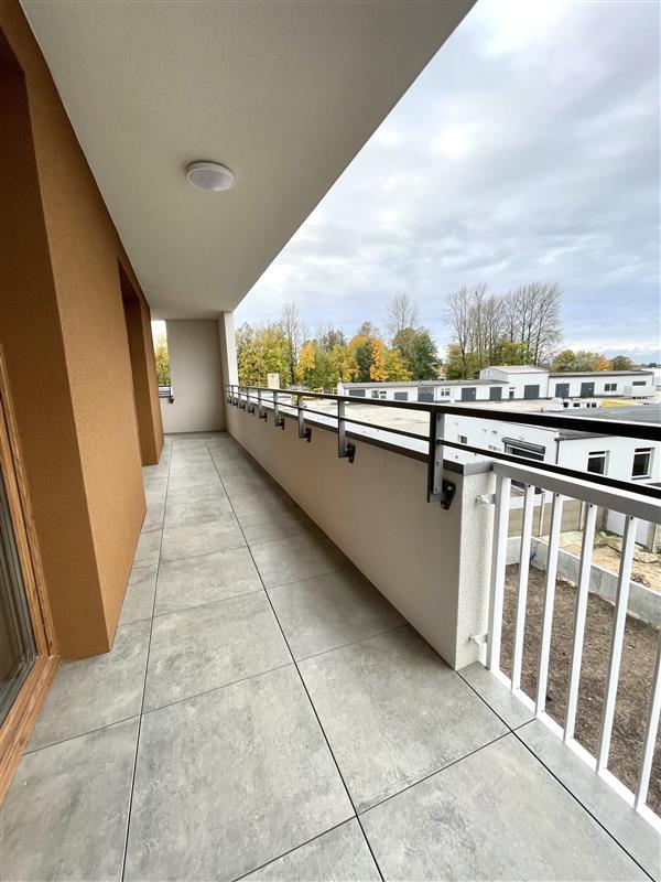 Mieszkanie dwustronne, w standardzie deweloperskim, standard ten obejmuje m.in.: stolarkę okienną PCV, drzwi wejściowe do lokalu mieszkalnego, tynki wewnętrzne, posadzki betonowe, parapety wewnętrzne, grzejniki panelowe, balustrady balkonowe, terakota na balkonach.