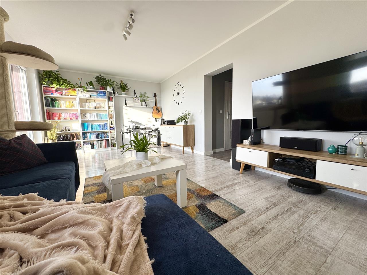 Mieszkanie składa się z salonu z aneksem kuchennym (20,37m2), pokoju (16,68m2), korytarza (6,08m2) oraz łazienki (5,45m2). Z salonu wyjście na loggię o pow. 11,54m2.