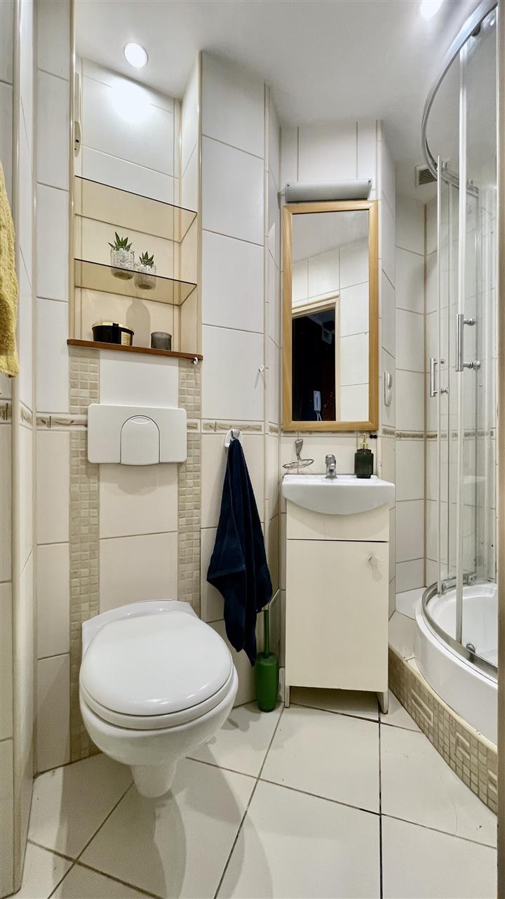 • Układ: dwa pokoje, aneks kuchenny, przedpokój z zabudowaną wnęką jako mini pomieszczenie gospodarcze, łazienka