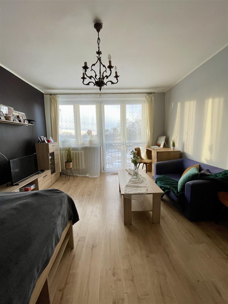 W skład mieszkania wchodzą: salon z balkonem francuskim, jasna, oddzielna kuchnia z oknem, łazienka z wanną oraz przedpokój.