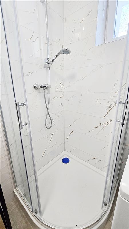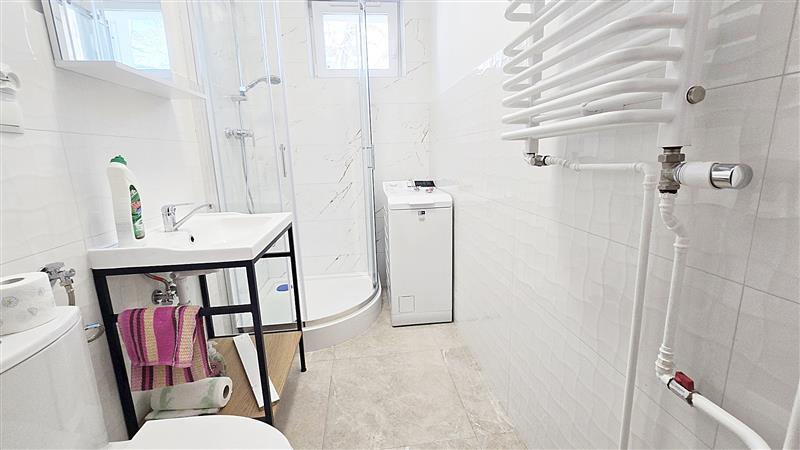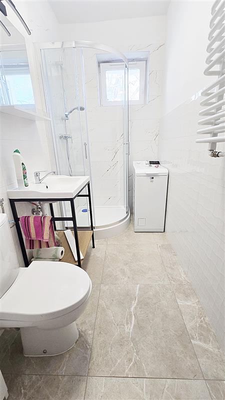 Łazienka również po kapitalnym remoncie, z wymienionymi instalacjami. Dla zwiększenia bezpieczeństwa piecyk gazowy został zastąpiony podgrzewaczem elektrycznym.