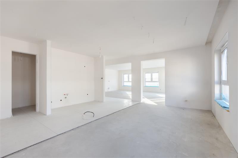 Apartament jest częściowo wykończony, rozpoczęte zostały prace w łazienkach. Dodatkowo wykonano kompleksowy