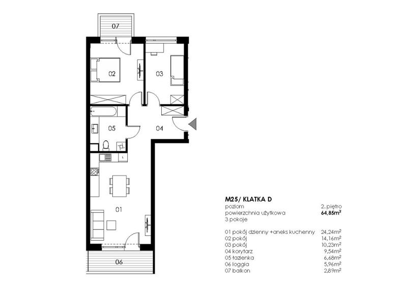 Mieszkanie deweloperskie: 3 pokoje, pow. 64,85 m2, z loggią i balkonem - w pobliżu centrum Koszalina.