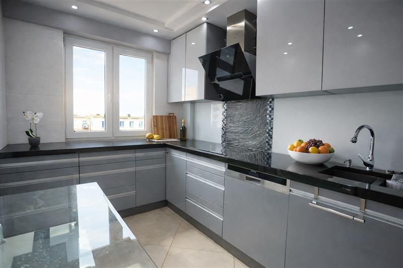 Blat kuchenny zrobiony jest z wysokiej jakości kamienia. Na suficie prawdziwe szkło, nie sufit napinany.