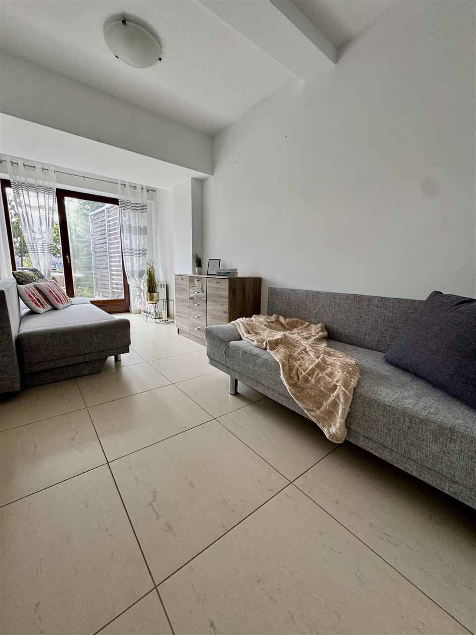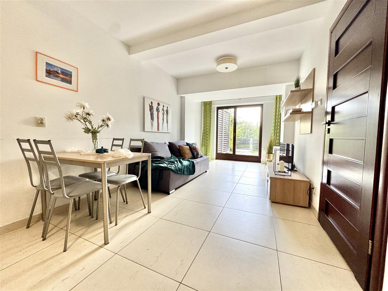 - przestronny salon z aneksem kuchennym i wyjściem na piękny, słoneczny ogródek (ogródek w części zagospodarowany deską kompozytową a w części zielenią),