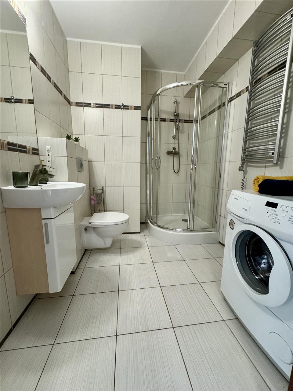 - łazienka z kabiną prysznicową,