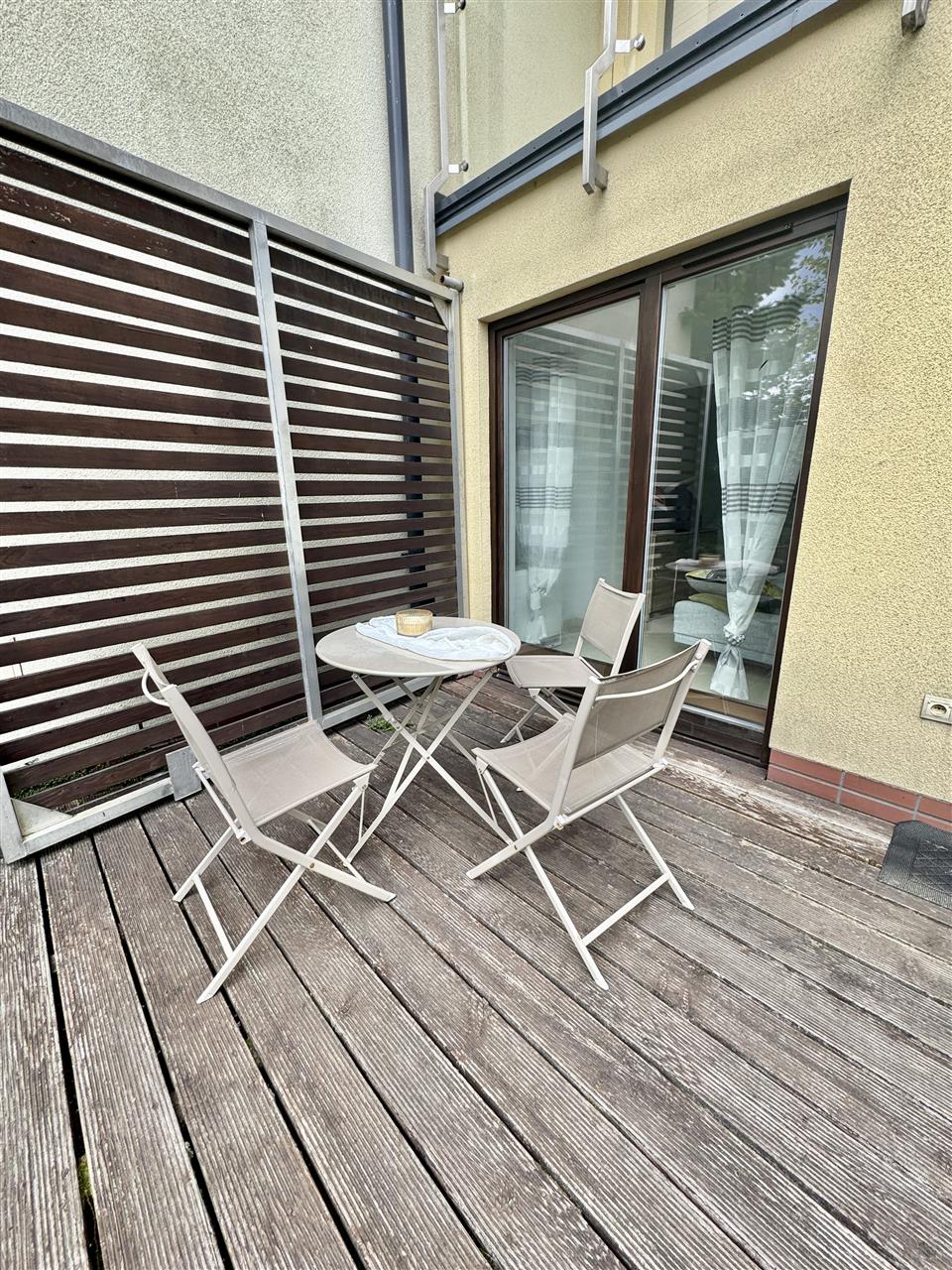 Dodatkowym atutem nieruchomości jest pięknie zagospodarowany, słoneczny ogródek o powierzchni 30 m2, z bezpośrednim wyjściem z apartamentu – idealne miejsce na relaks, spotkania z rodziną czy poranną kawę na świeżym powietrzu.
