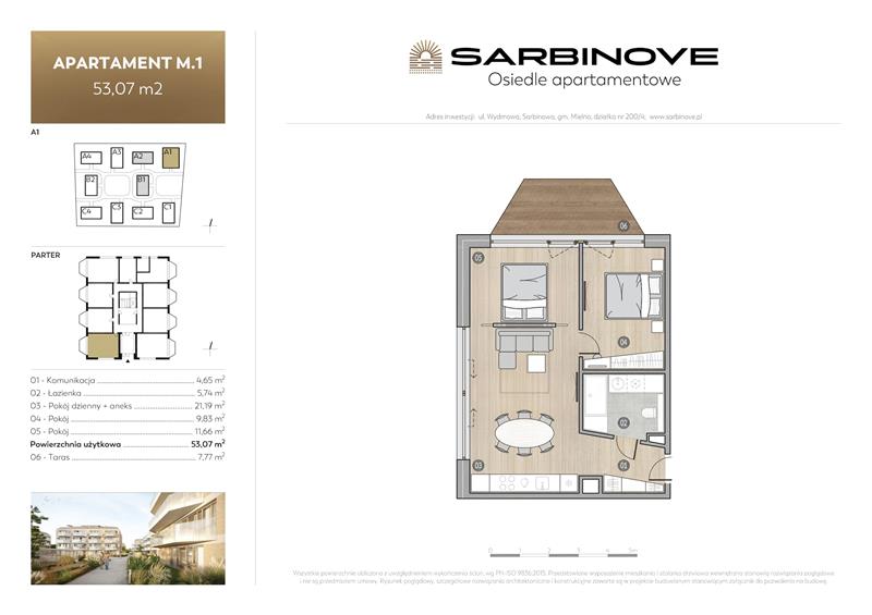 Przedstawiamy w ofercie 3 pokojowy apartament położony na parterze w Budynku A1 inwestycji SARBINOVE. To wyjątkowy lokal o powierzchni projektowanej 53,07m2cechujący się wysokim standardem wykonania i świetną lokalizacją, położony zaledwie 190m od morza w zachodniej części Sarbinowa.