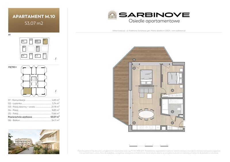 Przedstawiamy w ofercie 3 pokojowy apartament położony na I piętrze w Budynku A1 inwestycji SARBINOVE. To wyjątkowy lokal o powierzchni projektowanej 53,07m2cechujący się wysokim standardem wykonania i świetną lokalizacją, położony zaledwie 190m od morza w zachodniej części Sarbinowa.