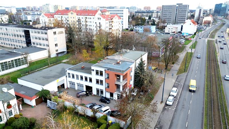 - Budynek z częścią dwukondygnacyjną warsztatowo-biurową oraz częścią frontową trzypiętrową oraz halą magazynową.